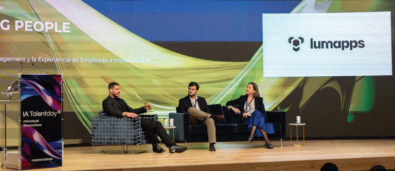 Moderó Norman Devaux, Area leader – Southern Europe & LATAM de LumApps, quien comentó que la mitad de las organizaciones ya usan herramientas de IA en Talento, Comunicación interna o reclutamiento. Lo importante es “saber garantizar que la IA automatice proyectos y empoderar a las personas en su realidad”.