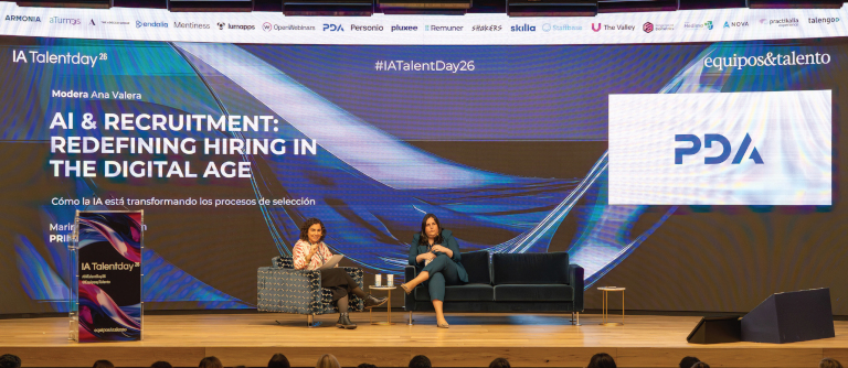 Salar señaló la importancia de conocer bien de dónde viene el dato y cómo lo usamos. Así, comentó que tienen un modelo de IA que procesa más de 130.000 candidaturas curriculares con más de 65 variables, y añadió que éste viene a aportar conocimiento sobre la parte conductual, lo que: “Nos facilita encontrar perfiles que encajen en Primaprix. Sin duda, la inteligencia artificial nos aporta procesos mucho más ágiles, objetivos y sin sesgos”. La acompañó en el escenario Ana Valera Rubio, head of People Analytics de PDA HR Tech y profesora de People Analytics e IA aplicada a RRHH en Universidad Nebrija. En su intervención, comentó que: “La IA prioriza, ordena, pero sigue siendo el humano quien la dirige. No va de algoritmos sino de decisiones que afectan a las personas. La inteligencia artificial nos da la oportunidad de reducir sesgos sin perder la calidad y calidez humana”.
