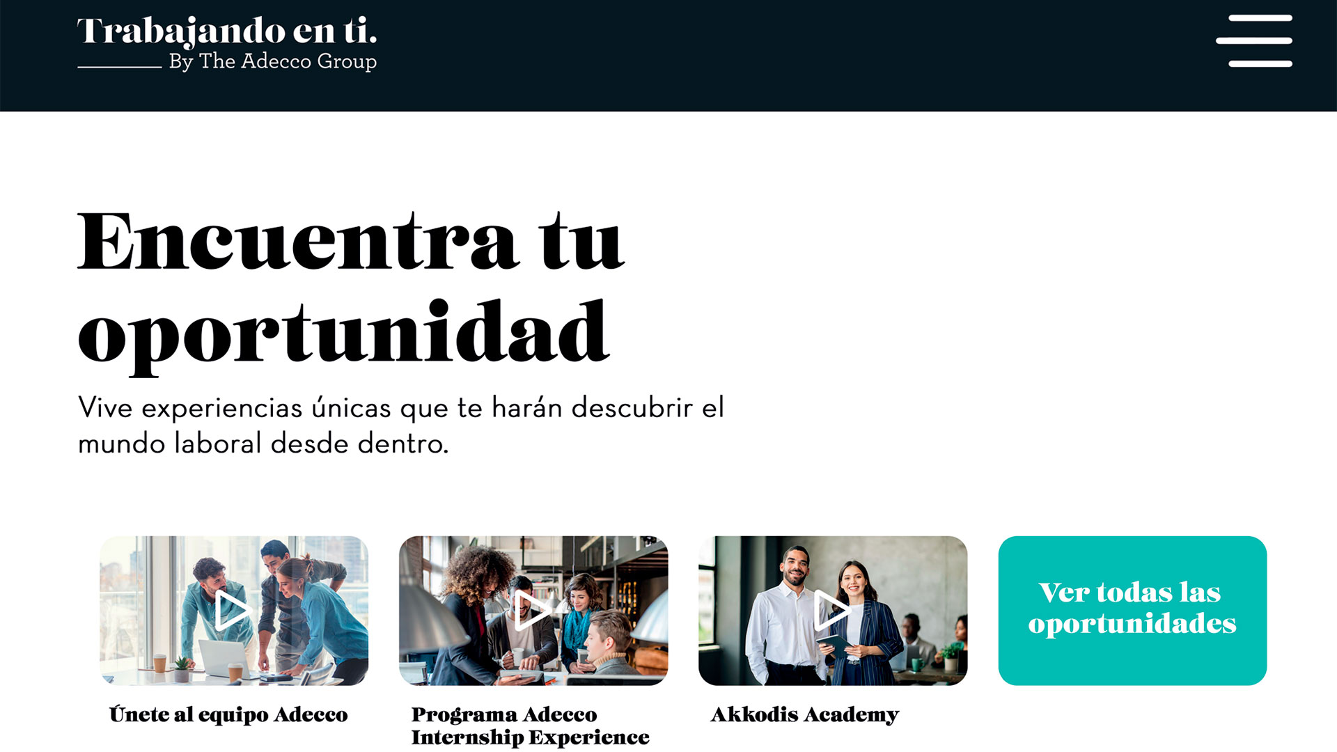 Consciente de necesidad de construir puentes entre las empresas y los jóvenes, Grupo Adecco puso en marcha hace un año “Trabajando en ti”, un proyecto destinado a impulsar la incorporación al mundo laboral de los más jóvenes a través de una plataforma online con contenido informativo y formativo y que ofrece oportunidades laborales: desde becas hasta incorporaciones en diferentes empresas. Desde su inicio, el proyecto, respaldado por más de 25 empresas colaboradoras de primer nivel y más de 50 universidades y centros de formación, ha atendido a más de 11.300 candidatos.