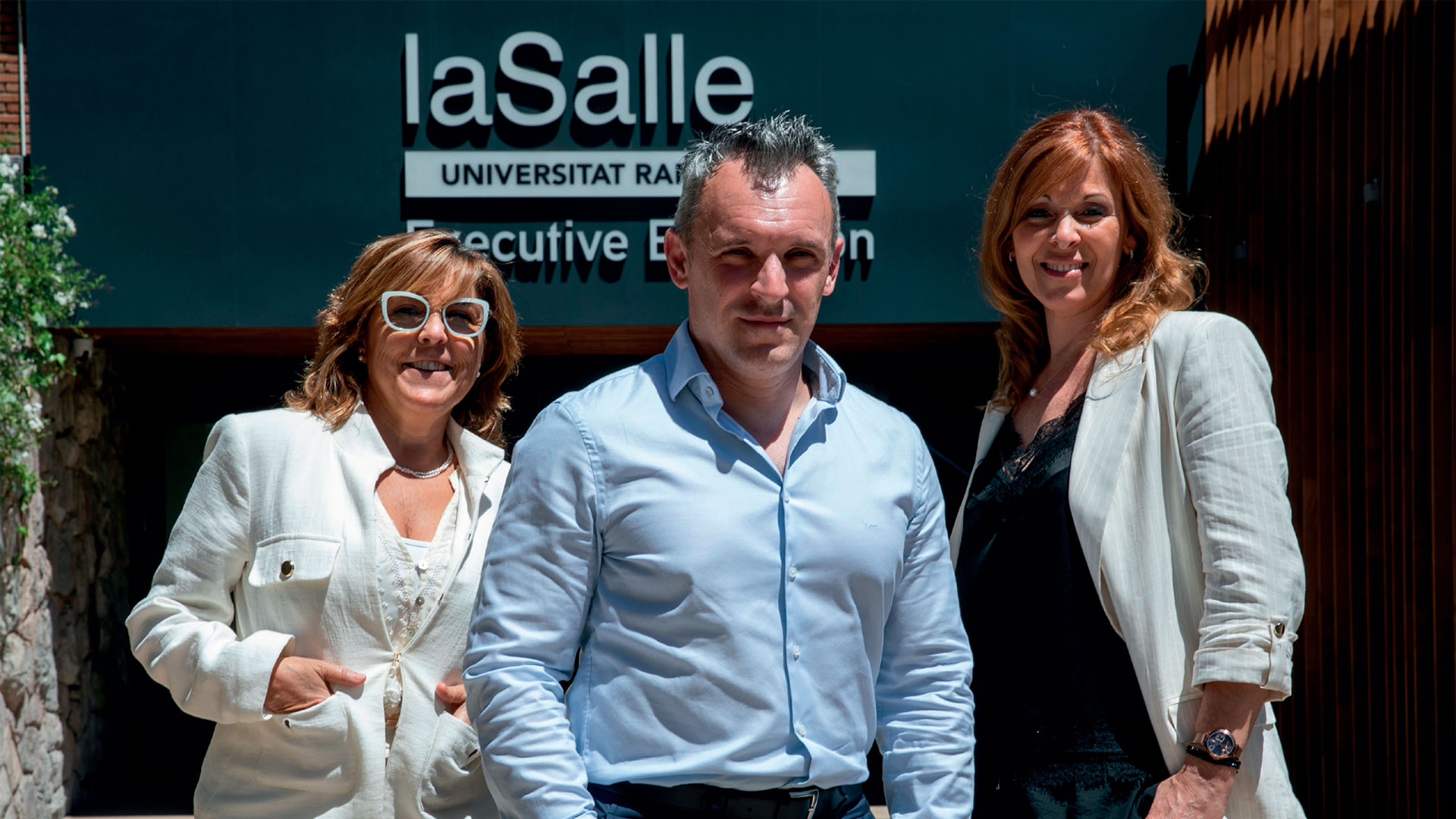 Íñigo Pradera, Dirección de Gobernanza Corporativa, Jaione Mendizabal, responsable de Talento Carrera, y Gemma Izquierdo, responsable de Talento Desarrollo y Formación, en La Salle Campus Barcelona