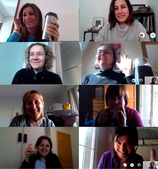 En lo personal, los retos que nos enviamos unos a otros, como compartir nuestras mejores recetas (muchas de panes y pasteles) y nuestros selfies, los viernes al mediodía, ¡con el aperitivo listo! Pero hay muchísimas actividades e iniciativas que van surgiendo espontáneamente, y eso es lo más importante, que las personas nos vamos animando unas a otras y nos sentimos "cerca" y queremos seguir compartiendo.
