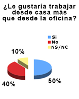 21/05/2009 La mitad de los españoles apuesta por el teletrabajo frente al trabajo presencial en la oficina, según se desprende de un estudio desarrollado por Dialcom, empresa de soluciones software de Comunicación y Colaboración Unificadas. Los encuestados que apuestan por el trabajo a distancia lo hacen en primer porque opinan que permite compaginar la vida personal y la profesional y destacan también motivaciones como la comodidad y un mayor aprovechamiento del tiempo.
