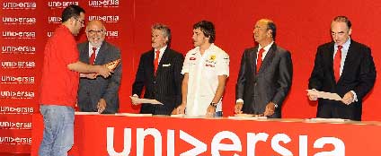 24/11/2009 Fernando Alonso, bicampeón del mundo de Fórmula 1, y Emilio Botín, presidente de Universia, han entregado hoy en Madrid las 270 becas Universia-Fernando Alonso 2009 de Movilidad Internacional.
