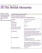 El palacio de Buckingham lanza en su web el anuncio para buscar personal doméstico, que cobrarará 16.500 euros