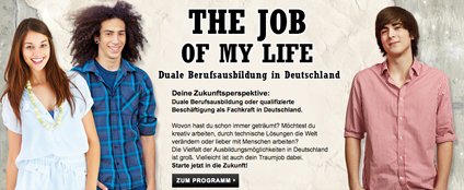 página web está de momento sólo en alemán pero se deberá añadir pronto una versión inglesa. La página web presenta el programa del mismo nombre que busca puestos de formación para jóvenes europeos en el sistema dual alemán, que combina el aprendizaje en una escuela de oficios con prácticas en empresas.