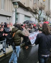 30/01/2013 Unas 300 personas convocadas por los comités de empresa de Navantia Ferrol y la industria auxiliar de esta comarca y por el personal de administración y servicios de la Universidad de Santiago de Compostela (USC) han protestado a las puertas del Parlamento de Galicia en defensa del sector naval de Ferrol y de la universidad pública.