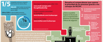 el Índice de Gobierno Documental de RICOH 2012, fue realizado por Coleman Parkes Research en nombre de RICOH. Revela hasta qué punto las nuevas tecnologías están impactando la forma en la que las compañías en Europa –incluyendo las instituciones educativas– están gestionando la información y también los procesos documentales críticos que sustentan en operaciones propias de una organización como finanzas, recursos humanos y contratación hasta registros de estudiantes y solicitudes de admisión.