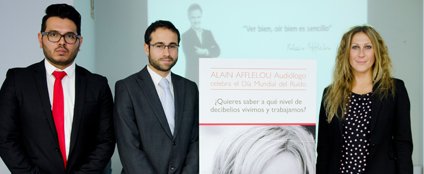 La compañía ha celebrado un encuentro para poner en relieve los problemas generales del ruido sobre la salud, destacando los ruidos que soportamos en el entorno laboral. La jornada ha estado presentada por Laura del Canto, responsable de ALAIN AFFLELOU Audiólogo, y Carlos Oleas, audiólogo de la compañía, junto con José Carlos Curiel, ingeniero técnico en Prevención de Riesgos Laborales de Asepeyo, que ha presentado la visión técnica de la evaluación de riesgos en el entorno laboral y la recomendación de medidas preventivas.