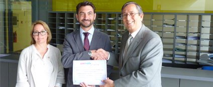 Al acto de entrega de este diploma han acudido Roberto García Junquero, jefe de Recursos Humanos; Sonia Gurrea Belenguer, coordinadora del Servicio de Prevención de Pavasal; y Manuel Roca, en nombre de umivale.