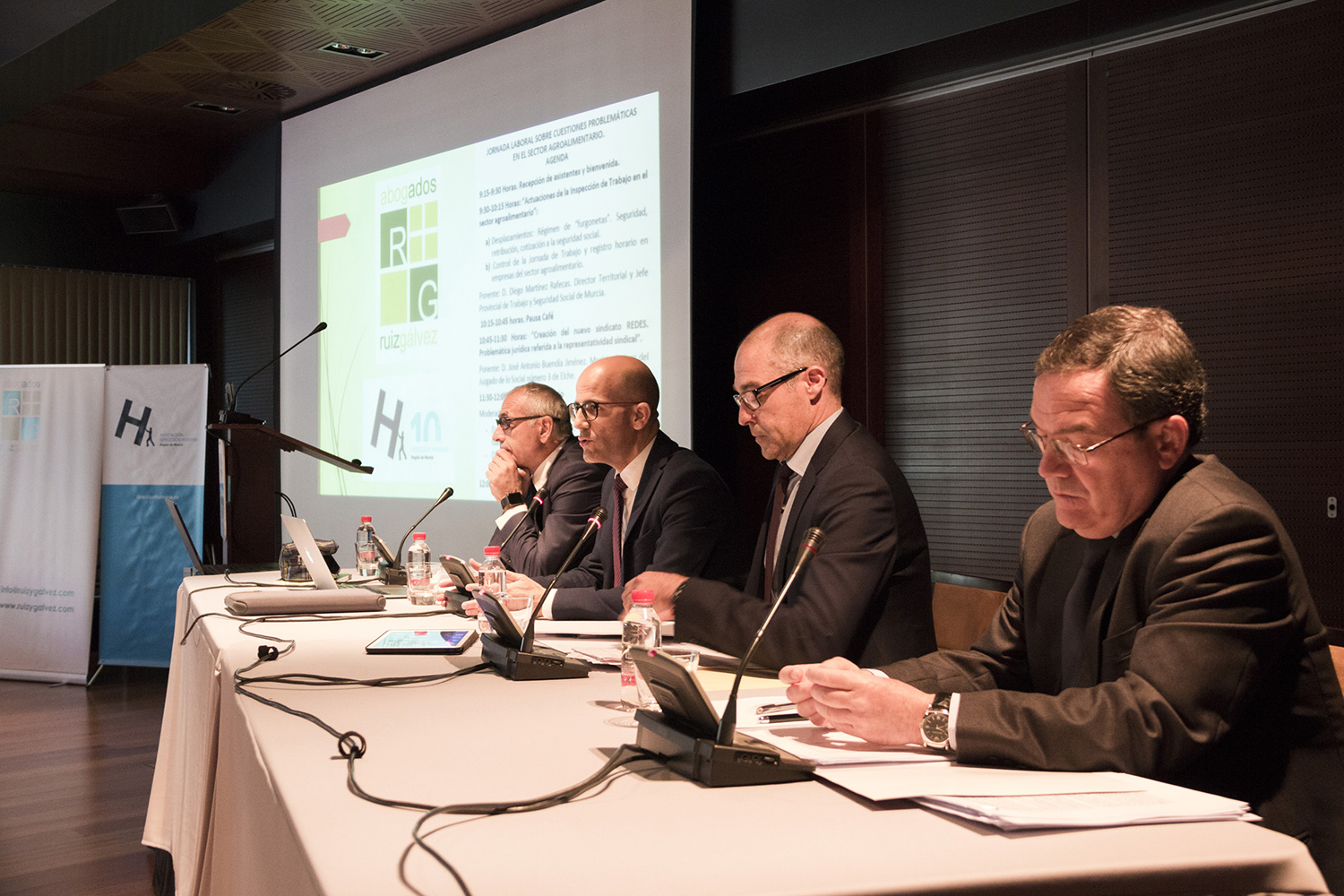 11/04/2017 La Asociación Dirección Humana, en colaboración con Ruiz y Gálvez, ha organizado una jornada laboral sobre cuestiones problemáticas en el sector agroalimentario. Miguel Moreno, Presidente de Dirección Humana en la Región de Murcia, y Juan Antonio Gálvez, socio Ruiz Moreno y Gálvez Peñalver SLP, han inaugurado la jornada presentando a los ponentes y destacando el nivel de las jornadas organizadas por DH en su décimo aniversario.
