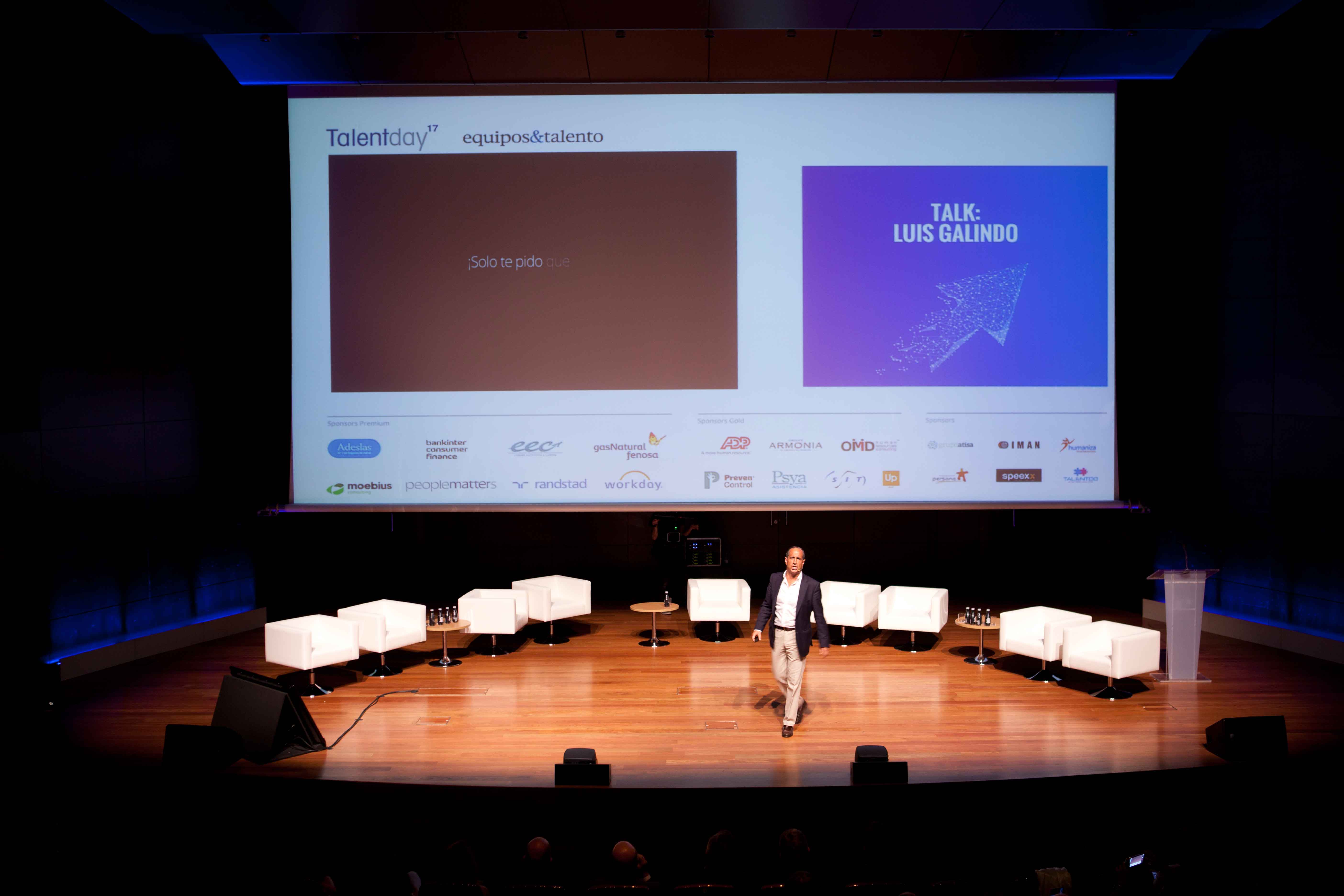 El Talk de la Sala 400 del Reina Sofía corrió a cargo del experto en motivación, Luis Galindo. El conferenciante lamentó que “hemos creado una sociedad escéptica” en la que la gente ve el trabajo como un mal necesario para pagar la hipoteca a final de mes y “en la que cuanto menos se trabaje y cuanta menos responsabilidad se tenga mejor”. Ante esta realidad, Galindo apeló a los asistentes de Talent Day 2017 a “captar a gente con ilusión” y “brillo en los ojos”.