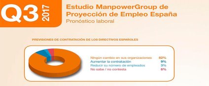 Por otra parte, el estudio revela que el 9% de los directivos españoles entrevistados prevé aumentar la contratación durante el tercer trimestre de 2017, frente al 82% que no espera ningún cambio en sus equipos y el 3% que prevé reducir su número de empleados.