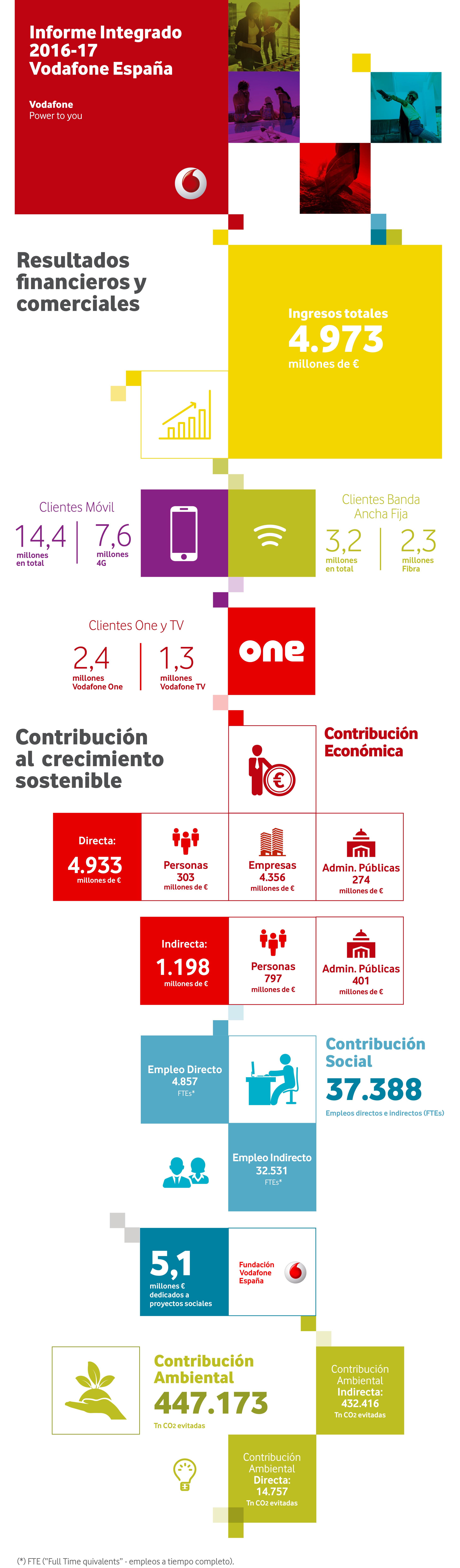 Vodafone España daba a conocer, hace unos días, algunos de los datos que componen su Informe Integrado, correspondiente al ejercicio 2016-2017. En este sentido, la empresa revelaba que su contribución al empleo español fue de más de 37.000 empleos directos e indirectos durante este período.