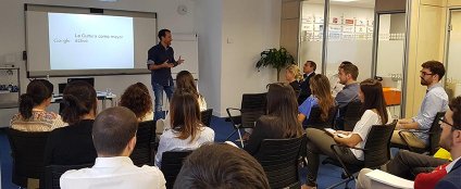 La formación en Google es otro ejemplo que muestra que la cultura de Google se basa en aspectos como la innovación, la flexibilidad o el self-service. Tal y como explicó Javier Martín, cada empleado consulta la plataforma de cursos y elige a qué curso quiere ir sin necesidad de pedirlo a su manager.