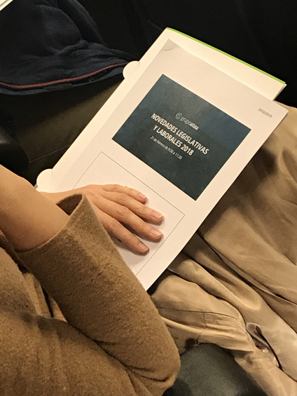 En cuanto a normativas pendientes de aprobación para este 2018, Begoña Sanz enumeró durante su ponencia algunas de ellas. La novedad más comentada fue el Proposición de Ley de Igualdad Retributiva entre Hombres y Mujeres estableciendo con ella la revisión de los mecanismos para asegurar su cumplimiento, así como la modificación del art. 34 del ET, relativo al registro diario de la jornada de trabajo.