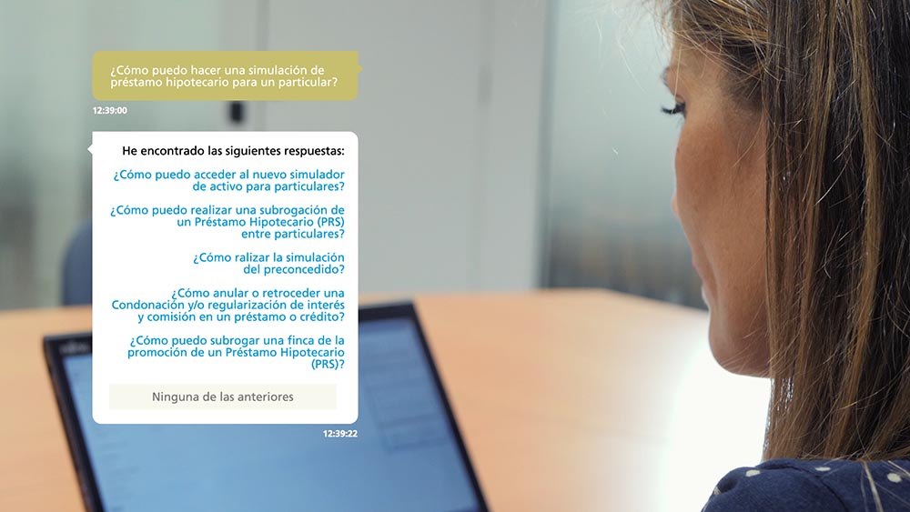 La consulta se expone a través de un sistema de chatbot, diseñado para que el asistente entienda la pregunta, formulada en lenguaje natural, y responda de la misma manera. Para el diseño del proyecto, CaixaBank e IBM han entrenado al sistema utilizando más de 60.000 variaciones de posibles preguntas. Además, cada día, a partir de las consultas recibidas, el sistema puede enriquecer su nivel de comprensión del lenguaje y su capacidad de respuesta.