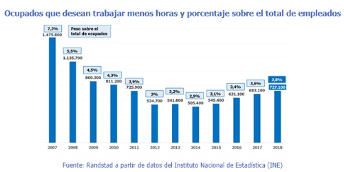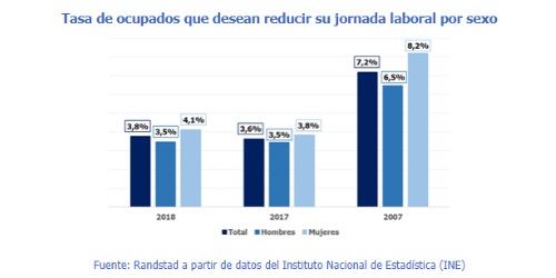 Asimismo, al analizar el lado opuesto, el de aquellos trabajadores que desean trabajar más horas, el estudio de Randstad revela que 2.177.700 ocupados estaría interesado, llevando consigo un incremento proporcional de su salario. A pesar de superar la barrera de los dos millones, esta cifra refleja un descenso por quinto año consecutivo.