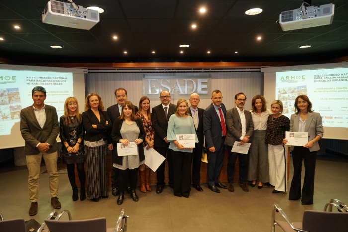 19/11/2018 Cerca de un centenar de personas se han reunido en la sede de ESADE Madrid en torno al XIII Congreso Nacional para Racionalizar los Horarios Españoles celebrado por ARHOE, con el apoyo de la Comunidad de Madrid o el Ministerio de Sanidad, Consumo y Bienestar Social, así como CaixaBank, Banco Santander, Reale Seguros, DCH o Ifma España, entre otros.