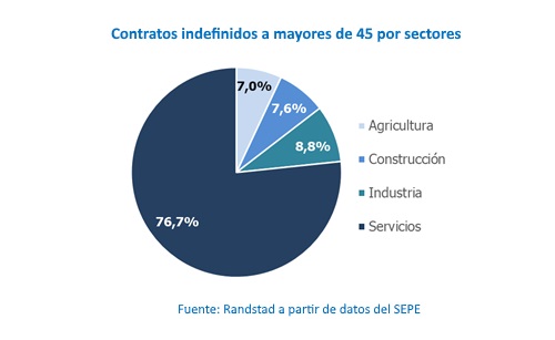 Servicios acumula el 76,7% de los contratos indefinidos a mayores de 45 años