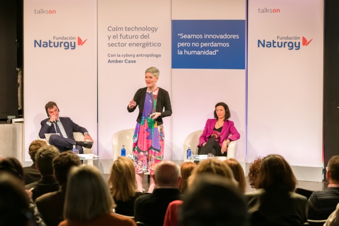25/02/2019 La Fundación Naturgy ha celebrado en Madrid, la primera sesión del nuevo ciclo de conferencias talkson con la cyborg antropóloga Amber Case, que habló sobre ‘Calm technology y el futuro del sector energético’ y ofreció una previsión basada en datos de Cisco: 50.000 millones de dispositivos estarán en línea en 2020. “En una era de tecnología interruptiva, necesitamos de la calm technology”, afirmó.