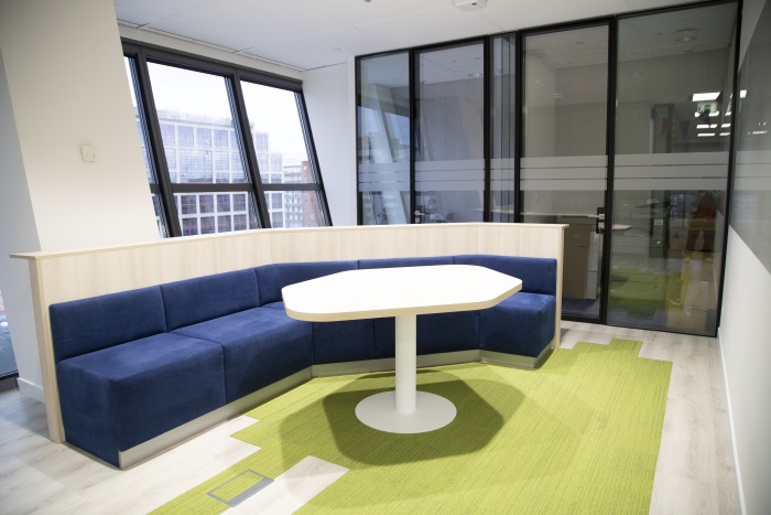 La reestructuración del espacio de AIG ha supuesto una reducción del número de despachos y un aumento de los distintos tipos de salas de reunión y espacios de colaboración. Aparte de las salas de reuniones al uso, se han instalado Focus Rooms, para reuniones entre dos personas o para realizar tareas que necesiten especial concentración, y Phone Booths, para realizar llamadas sin molestar al resto de los compañeros.