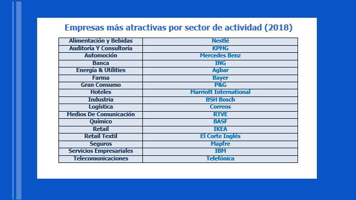 No obstante, al analizar los datos por sectores, grandes compañías como P&G, Marriott International o BSH Bosch han sido otras de las destacadas en esta edición, tras tener en cuenta las respuestas de las más de 10.000 encuestados en España, que han opinado sobre el atractivo como empleadores de las principales compañías en función de su sector de actividad.