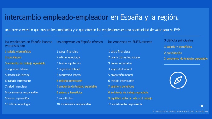 Durante los diez años en los que se lleva publicando el informe Randstad Employer Brand Research, se han realizado más de dos millones de encuestas a trabajadores en todo el mundo, más de 70.000 sólo en España. En este sentido, además del salario, entre los aspectos destacados se sitúan la conciliación laboral-personal, el ambiente de trabajo, la flexibilidad o la seguridad en el empleo, que fue, de hecho, el factor más valorado durante los años de crisis económica.