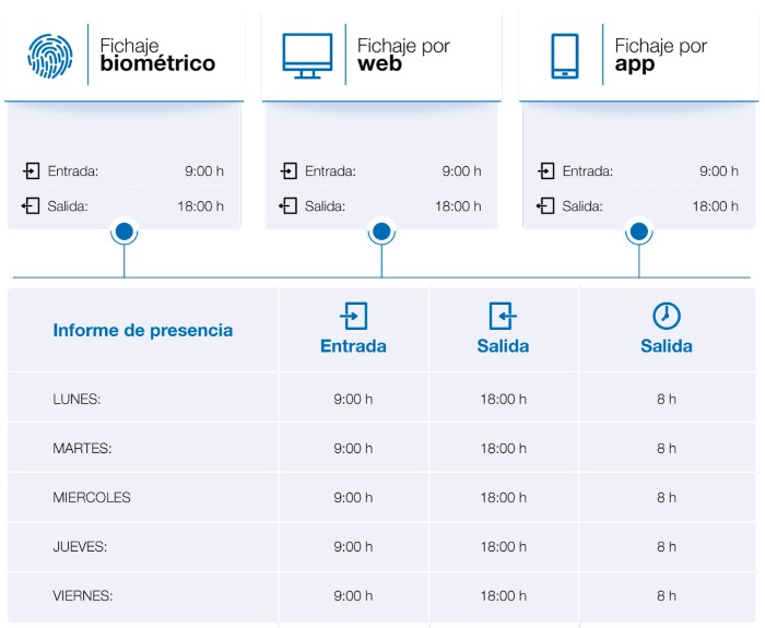 La nueva solución creada por Arión permite, según explican fuentes de la compañía, "el fichaje biométrico, fichaje vía web y el fichaje con dispositivo móvil". Además, el software, el cual esta adaptado a la nueva legislación y al que se accede desde Cloud, ofrece la visualización de todos los fichajes de un trabajador, incluyendo el calendario laboral del mismo, los absentismos y licencias retribuidas, y permite una creación ilimitada de horarios fijos, flexibles, rotativos, etc.
