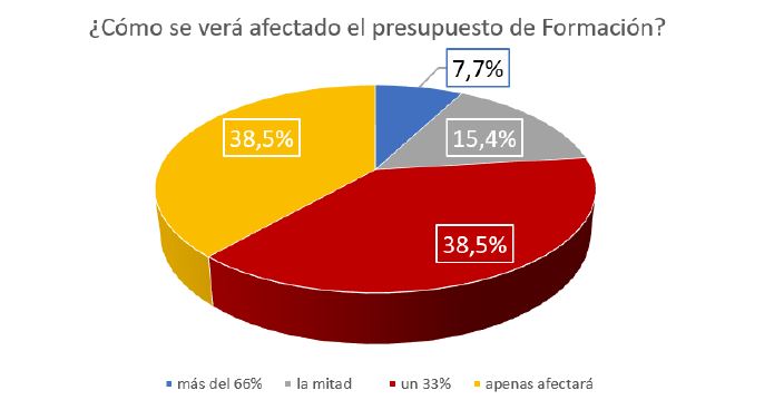 Como principal conclusión positiva del estudio del Gref es que los responsables de Formación que han participado en sus dos encuestas consideran que esta situación que vivimos es coyuntural, y aunque los datos han ido cambiando en algunas de las variables estudiadas, la mayoría (dos de cada tres) espera que sus presupuestos no se verán afectados o se reducirán en poca cuantía, un 33%, lo que dadas las circunstancias es una buena noticia.