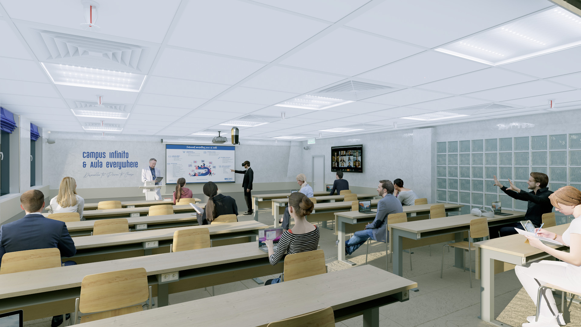 Esta nueva metodología se articula en una formación mixta y flexible que combina la presencialidad en remoto y la presencialidad física, convirtiendo el aula y el campus en espacios infinitos que unan lo mejor de los dos mundos: las últimas tecnologías y el contacto personal. Todo ello, garantizando los máximos estándares de calidad docente, así como una interacción constante con profesorado, estudiantes y otras áreas de la Escuela.