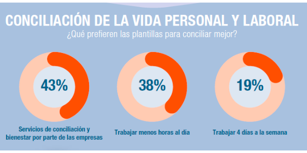La segunda solución más aceptada es trabajar menos horas al día (38%). Los expertos señalan que la principal razón de que la jornada de 4 horas no tenga tanta aceptación en España es debido a que muchas oficinas han fijado la hora de salida de los viernes a las 15 horas (algo que no es tan común en los países europeos) y en la mayoría de los lugares se practica el teletrabajo el último día de la semana.