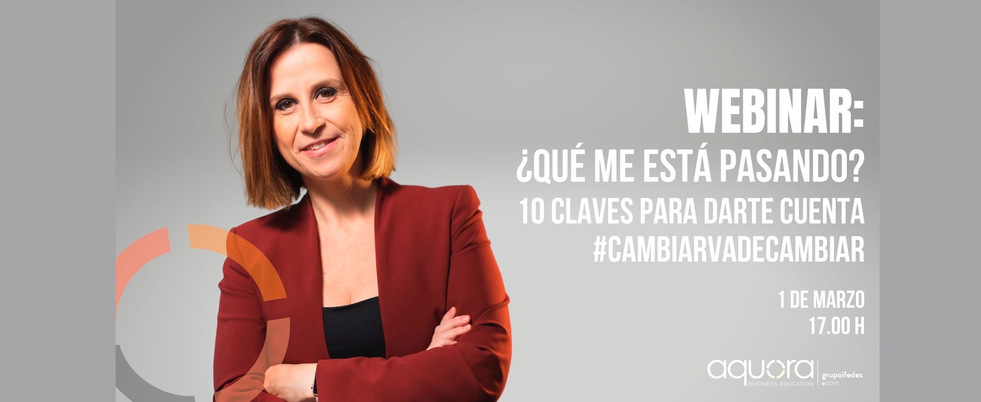 Este webinar “¿Qué me está pasando? 10 claves para darte cuenta (que ya es hora)” tendrá lugar el próximo 1 de marzo a las 17.00h de la mano de Ana Castillo, Culture & Talent Design Manager de Aquora Business Edication. La asistencia al mismo es gratuita previa inscripción. Toda la información relativa al evento puede encontrarse en la web de Aquora.