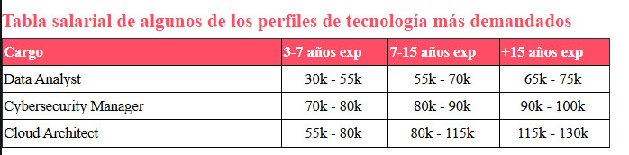 "Más allá de la compensación económica, los profesionales de tecnología valoran el salario emocional, que incluye flexibilidad, trabajo remoto, un entorno que promueva el bienestar y la capacitación continua en forma de acceso a cursos y certificaciones de alta reputación en el mercado. Las empresas que ofrecen programas de desarrollo profesional continuo y planes de carrera bien definidos son apreciadas en un mercado altamente competitivo", agrega Céspedes.