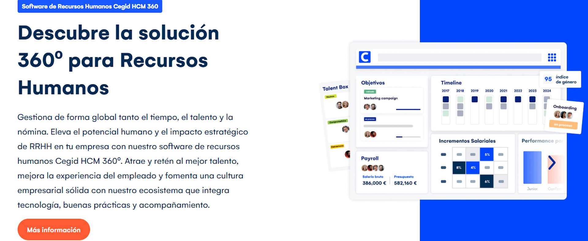 Para dar respuesta a este reto, Cegid y Viewnext unen su propuesta bajo un mismo modelo de servicio 360º que abarca el portfolio completo de soluciones HCM: desde la gestión avanzada de nóminas y administración de personal con Cegid Peoplenet, hasta la optimización del tiempo y el desarrollo del talento. Las capacidades de IA embebidas en las soluciones de Cegid permiten a las organizaciones automatizar procesos críticos, mejorar la toma de decisiones estratégicas y elevar la experiencia del empleado, todo ello sobre una infraestructura cloud robusta y escalable.