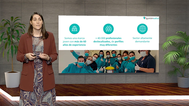 A continuación, en la Keynote Talk titulada “Quirón- Salud: Nuestra mejor versión”, la responsable Corporativa de Comunicación Interna y Marca Empleadora del grupo sanitario, Gloria Alonso, explicó la difi cultad de lanzar mensajes homogéneos y patrones comunes a una plantilla muy diversa, formada por 40.000 profesionales que trabajan en distintas posiciones y localizaciones. “La diversidad de perfi - les profesionales que hay en el Grupo hace que desde Comunicación Interna tengamos la necesidad de hipersegmentar para conseguir llegar al 100 % de los empleados. ¿Cómo lo hacemos? Con toda nuestra experiencia, hemos llegado a la conclusión de que tenemos que combinar planifi cación y flexibilidad y este año más que nunca, porque con independencia de que tengamos una hoja de ruta como compañía, siempre tenemos que escuchar al empleado para saber hacia dónde nos dirige, qué necesidades tiene y cómo podemos apoyar y contribuir desde Comunicación Interna a que esté bien. Eso, al fi nal, nos ha llevado al aprendizaje de que a nosotros lo que nos funciona son los movimientos internos. Más allá de comunicar benefi cios para el propio empleado, hay que provocar esos movimientos entre estos hacia la movilización precisamente de la salud de persona a persona”. Además, Gloria Alonso explicó como caso de éxito de su departamento la creación del movimiento interno #GraciasQuirónSalud. “Llegamos a la conclusión de que el éxito radica en que al final forma parte de nuestro ADN, pues se centró en querer cuidar de los demás, en ofrecer nuestra mejor versión y que, cuando alguien necesita ayuda, somos los primeros que vamos a ayudar. Por esto, #Gracias- QuirónSalud nos sirvió para conectar a las personas entre sí”.