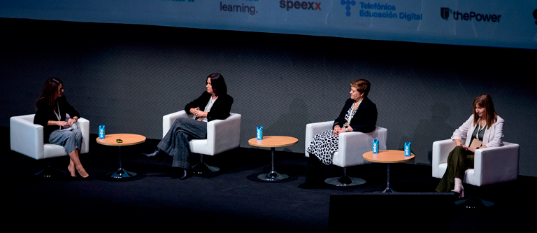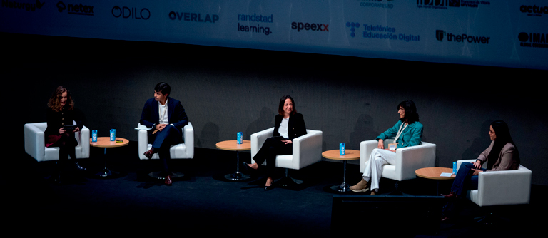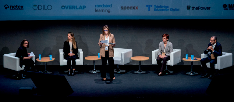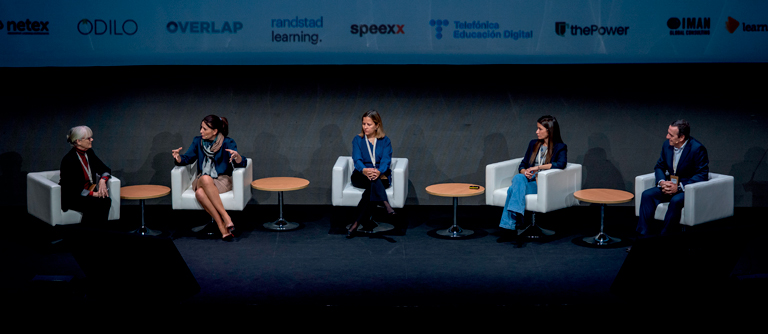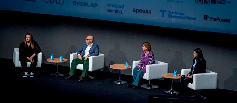 “Explorando la IA, más allá de las hard skills” fue el contenido patrocinado por Telefónica Educación Digital y moderado por Juanjo Fraile, advisor & sherpa de Innovación, Comunicación y Desarrollo Personal y fundador de Talentya, quien destacó que: “La velocidad del cambio nos hace perder efi ciencia. Todos tenemos un verdadero problema: nuestra capacidad de adaptarnos a un nuevo mundo que dentro de 5, 10 o 15 años no tendrá nada que ver con el actual. Vamos a vivir en un contexto profesional donde lo que queda por llegar va a ser más relevante que lo que hemos vivido”. En este sentido, destacó que: “La tecnología siempre nos mejora y es capaz de permitirnos optimizar nuestro tiempo. Ha sido una clave en la humanidad.” Por su parte, David Vivancos, AI & Data Science Senior advisor & serial entrepreneur, aseguró que: “Nos tiene que preocupar no estar preparados para lo que viene. Debemos utilizar todos los días la IA porque si no, desde un punto de vista competitivo, estamos en desventaja”, y abogó por un tratamiento de los datos adecuado y ético. En su intervención, Rosalía O’Donnell, CEO de Telefónica Educación Digital, destacó que: “El reto al que nos enfrentamos no se resuelve con herramientas físicas ni con formación presencial, necesitamos herramientas digitales. Tenemos que aportar valor a nuestro cliente para dotar a los empleados de las capacidades que van a necesitar”. y añadió que: “Debemos rodearnos de un ecosistema potente de partners y tomar decisiones tecnológicas que no comprometan el futuro y nos permitan continuar creciendo”.
