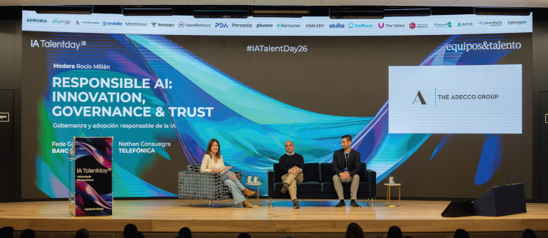 El IA Talent Day 26 comenzó con la mesa redonda “Responsible AI: innovation, governance & trust”, en la que participaron Banco Sabadell y Telefónica.