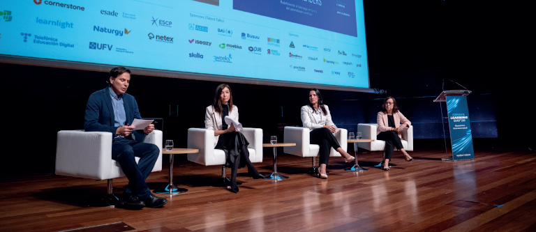 “El papel de la formación en la transformación de las organizaciones” fue la mesa de Esade, en la que Gema Góngora, Global director of Talent & Learning de Iberdrola, destacó que: “Nuestros focos se centran en la marca, la fidelización y el talento, donde la formación es una palanca clave. Tenemos que garantizar que disponemos de lo necesario para abanderar la transformación de la electrificación con formación estratégica. Necesitamos líderes que sean transformadores, con visión y ejecución para que saquen lo mejor de los equipos”. PilarDefez, directora de la Universidad Corporativa y Cultura de Antolin, expuso que: “Afrontamos una historia de éxito y crecimiento a través del empeño, pero tenemos que transformarnos. La geopolítica, la sostenibilidad, las líneas verdes... son grandes puntos que nos desafían. Estamos más abiertos al cambio, queremos crear a ese líder que entienda esta filosofía y abrace la IA”.