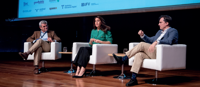 La IA ha revolucionado el aprendizaje y el conocimiento. Debatimos sobre esta temática en la mesa redonda “IA first, human centric”. MiguelÁlvarez, Estrategia e Innovación de Telefónica, expuso que: “La IA está preparada para predecir, no para verificar. Se necesitan espacios prácticos para esa experimentación. No todo el mundo necesita lo mismo, por eso en una formación de IA necesitamos casos de uso según el colectivo y la actividad. Este contexto es el valor que aportamos en nuestro trabajo, y hay que desarrollar habilidades soft con metodologías que aseguran que ese aprendizaje se produce con la IA, pero también entre las personas”. Jara Sepúlveda, experta pedagoga de Universitas Telefónica, dijo que las empresas “trabajan con sus empleados para conseguir las habilidades necesarias para alcanzar un nivel de seguridad estratégica con la IA”. “Les enseñamos fundamentos de la IA, casos de uso adaptados a sus puestos de trabajo, así como conceptualización. Aprenden a resolver y supervisar. Hemos enseñado a más de 20.000 empleados un modelo escalable, medible y personalizado”.