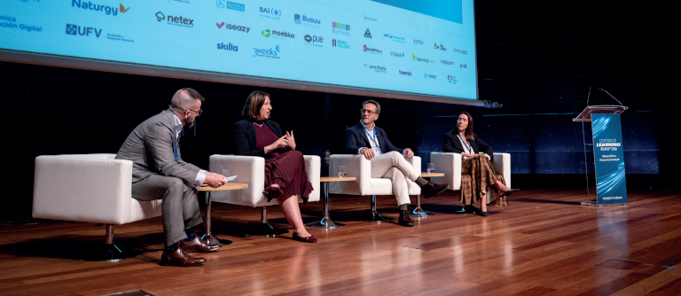 En un mundo en transformación, las estrategias globales de aprendizaje son clave para anticiparse. En la mesa moderada por Mónica Gálvez, directora de Contenidos y Programas de Custommedia, Víctor Rodríguez, Global Learning manager en Telefónica, destacó que para hacer de la formación algo competitivo la principal barrera es la brecha de capacidades. “Nuestra tarea es, sin duda, estratégica. Hemos identificado varias palancas como conocimiento de negocio, transformación con la IA y trabajar en la cultura del aprendizaje continuo. Rita González, directora en Randstad Learning, recordó que más del 80 % de las empresas multinacionales se enfrentan al reto de lo local y lo global y comentó que: “No se puede imponer todo a todos, pero la anarquía tampoco funciona. Debemos usar la glocalización, que marca la estrategia global versus la local. La identidad de la organización no es modulable, por tanto, sí a la glocalización: pensar en global e implementar en local. Pero la G2.0 hace que también implementemos en global. Hay que poner el conocimiento del negocio en el centro. Por su parte, Olga Acebo Adrio, Global L&D manager en Insud Pharma, explicó su iniciativa IA LAB, un laboratorio de herramientas de IA aplicadas al negocio, que se cocrea desde L&D y la oficina de Transformación. “La exigencia imprime carácter: agilidad e innovación están en nuestro ADN y se cuelan en todos los programas de forma- Strategic learning & global leadership ción y nos ayudan a adaptarnos al entorno cambiante diario. La tecnología y el talento son los motores clave de nuestra compañía. El liderazgo va más allá de la tecnología: va de empatía”.