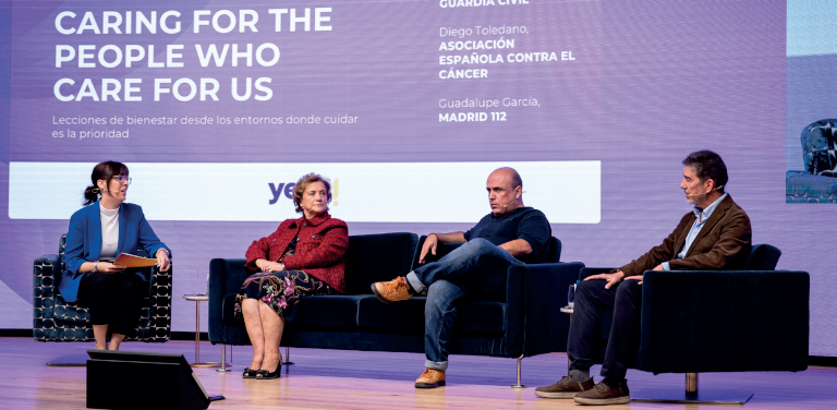 Elena Sánchez, directora clínica y de operaciones en YEES! y moderadora de esta mesa, planteó a los expertos: ¿cómo cuidamos a quienes cuidan de nosotros? Los profesionales que debatieron sobre ello trabajan en contextos de alta exigencia emocional y operativa y compartieron su experiencia. Benito Florido, comandante psicólogo de la Guardia Civil, comentó que: “Debemos saber pedir ayuda, porqué muchas veces creemos que las personas que trabajan al pie del cañón no se rompen nunca. Es un estigma que cambiar. Nuestro principal reto es buscar el equilibrio entre la seguridad física y la psicológica de nuestros agentes. Hay una sobrecarga de estrés con mucho peso traumático. Nuestros compañeros han de poder seguir al pie del cañón, en primera fila, pero deben estar sin alteraciones emocionales significativas”.