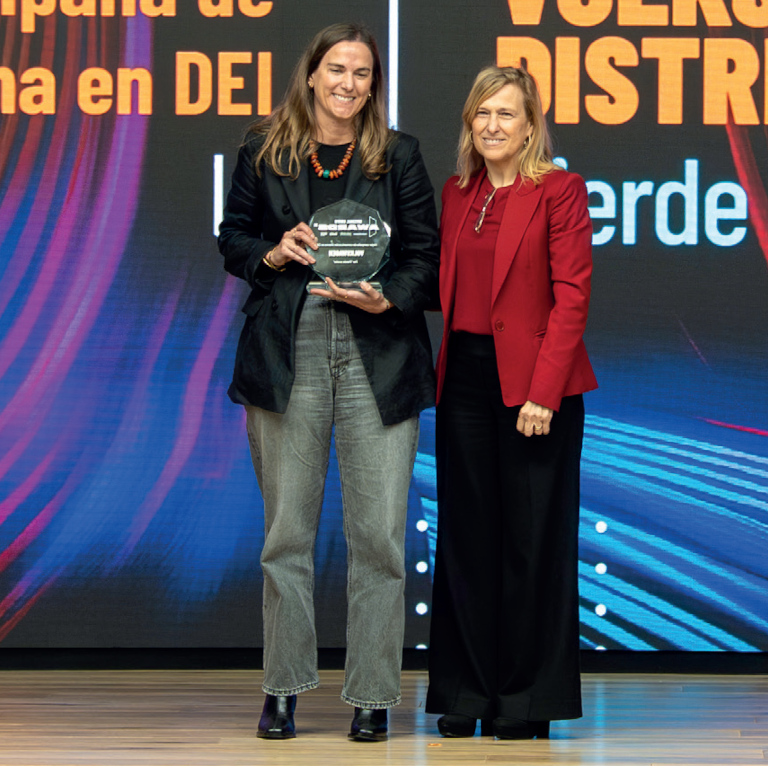 Representante de Volskswagen Group junto a Mónica Gálvez, de Equipos y Talento.