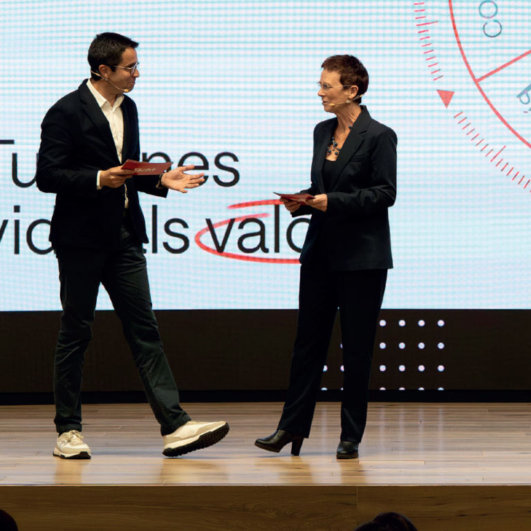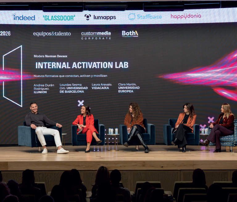 Tras el coffee break, la mesa “Experience-Led Change / Live Transformation”, moderada por Diana Puig, de Both, exploró cómo la transformación se activa desde la experiencia. Inés García Moya, Comunicación corporativa e interna de Damm, presentó “IAmm Xperience”, un proyecto para acercar la IA al día a día de los empleados; Mª Mar Llach, Associate director, Global Culture & Leadership de Almirall, compartió “The Big Bang Culture”, un programa que impulsa la cultura a través de episodios experienciales; y Beatriz Fernández, head of Employee Center & Analytics de Generali, explicó “Leónidas”, un asistente virtual basado en IA que mejora la experiencia del empleado.
