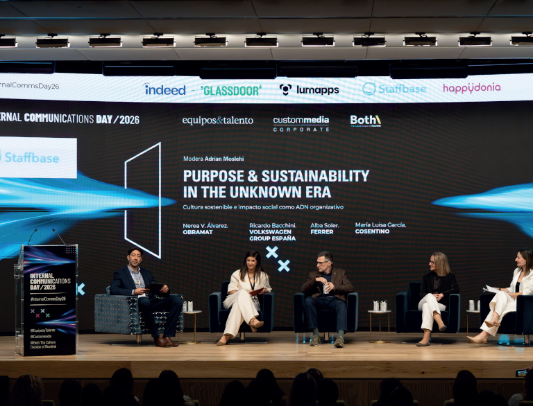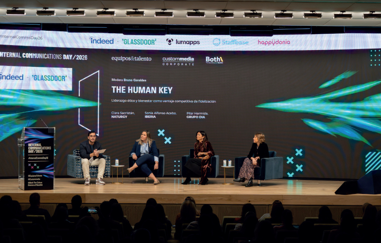 La mesa “The Human Key”, moderada por Bruno Geraldes, director Enterprise Sales Iberia de Indeed, abordó el liderazgo ético y el bienestar como ventajas competitivas. Clara Sacristán, responsable de Comunicación Interna de Naturgy, presentó “Team Naturgy” como un espacio de conversación real; Sonia Alfonso, responsable Comunicación Interna de Iberia, explicó cómo el “Día Mundial del TCP” refuerza el reconocimiento y el orgullo de pertenencia;