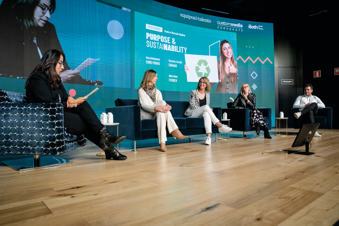Bajo la moderación de la directora de Propósito y Sostenibilidad de Both People&Comms, Marcela Ospina, la mesa redonda abordó cómo Ebro Foods, Enagás, Ferrer y Cabify se han transformado hacia la sostenibilidad y cómo la comunicación interna ha jugado un rol clave para logarlo.