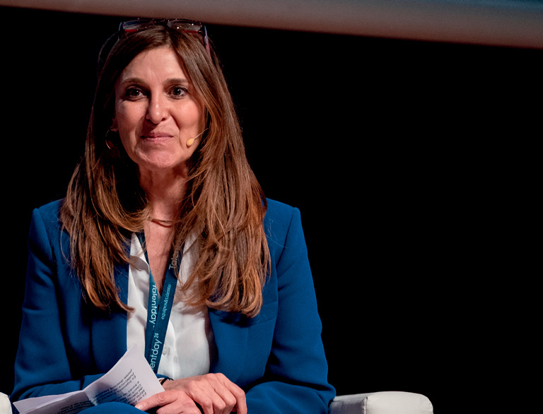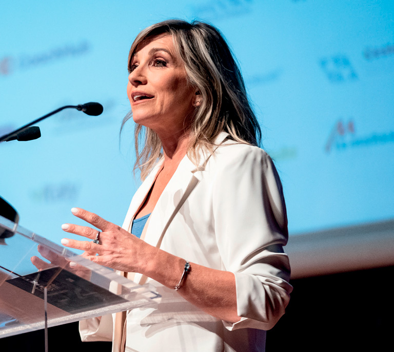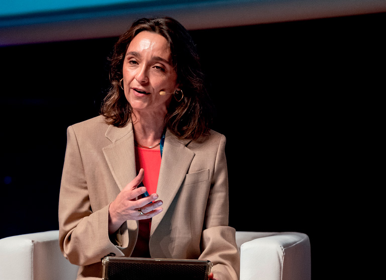 Esta experta en liderazgo contó con un equipo de músicos en el escenario para crear un ambiente más propicio para hablar de cómo las emociones son un camino directo al corazón y un impulsor de la transformación. Fue un espacio patrocinado por Aon Health Solutions, cuya representante, Carmen Burgos Casas, Executive director, puso en valor la importancia del liderazgo humanista para la evolución de las organizaciones.