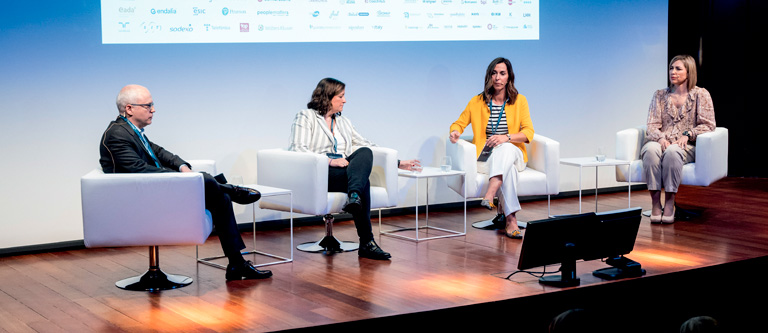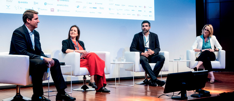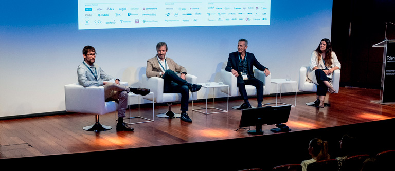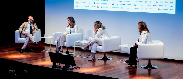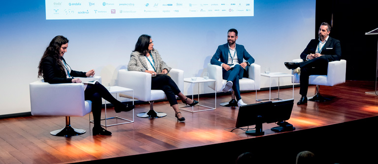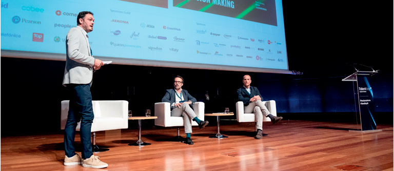La mesa patrocinada por CoachHub fue “Talent & culture transformation“, moderada por Antonio Hernández Briz, su Enterprise Transformation consultant. Beatriz Fernández Izquierdo, head of Employee Center and Analytics de Generali, señaló la innovación como facilitador de la implementación de herramientas tecnológicas para que las personas hagan mejor su trabajo. “El gran reto de la IA para las organizaciones es el cumplimiento de estándares normativos y éticos dentro de la estructura de trabajo para dar responsabilidad a las personas en su adopción. Por otro lado, destacó la motivación e impulso del líder como entrenador de sus equipos con programas como ‘Lidera’, basado en ejes que faciliten las relaciones entre personas: human touch, empoderamiento, simplificar el trabajo y el uso de la innovación”. Javier Azorín, responsable de Talento de Iberdrola, compartió su reflexión acerca de que: “Todas las relaciones personales están impregnadas de la capa digital y desde las compañías tenemos que adoptar la revolución de eficiencia en el proceso de selección y en cualquier momento del ciclo de vida del empleado a través de programas específicos. Un ejemplo incipiente de tecnología aplicada a la fidelización de talento es el piloto con el que vamos a crear un modelo de predicción basado en los datos históricos de compañía que nos ayude a predecir los candidatos que puede que se marchen e intentar evitarlo”. Por su parte, Beatriz Parga, directora de Personas, Cultura y Talento en Amara NZero, señaló que: “La transformación continua la vivimos desde y para el crecimiento de compañía, manteniendo una cultura homogénea para que podamos llevar nuestro propósito retador a 17 países. Tenemos multitud de culturas y maneras de pensar distintas y de ahí que hayamos definido los valores y sus compromisos asociados, como creatividad, innovación o empatía. Contamos con embajadores de cultura que aportan herramientas prácticas para hacerlos llegar a todo aquel que se incorpora”.
