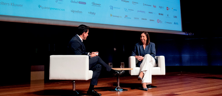 “Agile, sustainable & flexible: shaping the new organizational models of the future” fue el espacio en el que Javier Martín, director de Talento de Randstad España, entrevistó a Marta Machicot, directora Global de RRHH de Telefónica, una charla que sirvió para conocer en profundidad la cultura corporativa de una de las mayores empresas del país y cómo están impulsando y liderando su transformación. Así, Marta Machicot comentó que: “Estamos viviendo una era de innovación tecnológica, una explosión de nuevas tecnologías que hace que la tecnología sea accesible a todo el mundo y la IA generativa tenga unas posibilidades increíbles en la gestión de talento y en el empleo”. En su opinión, “la guerra por el talento se va a incrementar. Las empresas ya no competirán en su sector, competirán en la industria del talento que cada vez es más global”. Además, contó que en su organización están “empoderando a cada persona para que pueda liderar, dirigir y maximizar su impacto. Es un modelo por capacidades que es la base para avanzar en organizaciones líquidas, dinámicas y flexibles. No es una evolución, es una transformación que nos ha obligado a cambiar procesos y cultura”. Por su parte, Javier Martín, de Randstad España, destacó que “el mercado laboral está experimentando una transformación y los modelos organizativos no son ajenos al cambio. Por ello, comentó que: “Los mercados necesitan empresas organizadas en competencias, en soft skills, y en Randstad estamos trabajando en una organización transparente y flexible que nos permite estar preparados para los cambios”. En este sentido, aseguró que: “Ponemos a las competencias en el centro de cada uno de los procesos del journey del empleado, desde el onboarding al plan de carrera”. Y cerró explicando que “las culturas organizativas flexibles e inclusivas contribuyen a crear organizaciones más competitivas”