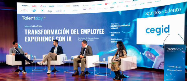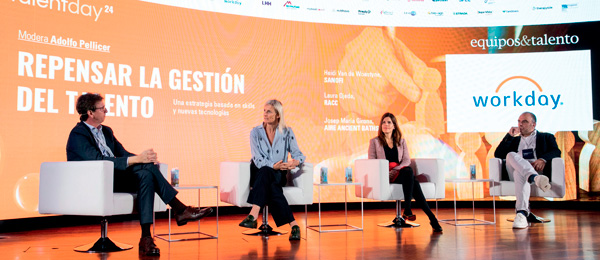 El TalentDayBCN24 comenzó con la mesa “Repensar la gestión del talento”, centrada en las estrategias basadas en skills. Así, Heidi Van de Woestyne, People & Culture director Iberia de Sanofi, afirmó que: “El empoderamiento es muy importante. Para desarrollar skills tienes que romper con las jerarquías e ir a equipos con menos capas organizativas. Nosotros fomentamos esquemas en los que el equipo es autónomo y decide quién representa cada rol para cada proyecto y, además, democratizamos los datos para que puedan tener la información real que les permita tomar decisiones”. Laura Ojeda, directora de Personas de RACC, aseguró que: ”Las organizaciones que más éxito tendrán en el futuro serán las que sean más líquidas: poder tener la flexibilidad de adaptar los proyectos en función de las habilidades que tengan las personas de la compañía. Conseguirlo implica un proceso que nos puede ir muy bien a todas las compañías, pero que necesita acompañamiento y que nos aprovechemos de la comunicación, del data analytics y de las conexiones entre personas”. También Jose Maria Girona, Global HR director de AIRE Ancient Baths, coincidió en que “el tema de las skills es un tema de necesidades”. Ante la carencia de talento, las empresas tendemos a retener, pero deberíamos intentar potenciar esas habilidades en nuestros colaboradores para potenciar su empleabilidad, para que sigan con nosotros, o para que puedan seguir desarrollando su carrera, y eso es fidelizar. Moderó Adolfo Pellicer, VP de Workday Iberia, quien explicó que: “Necesitamos saber qué skills tenemos en la compañía, de manera que mi planificación tanto de atracción como de desarrollo del talento sea adecuada”.