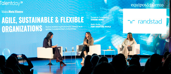 Agilidad, sosteniblidad y flexibilidad son tres palabras que, sin duda, definen los nuevos modelos organizacionales. Sobre esta temática se habló en la mesa redonda “Agile, sustainable & flexible organizations”, que contó con directivas de PortAventura y Danone. Así, Teresa de Castellarnau, HR director de Danone, explicó que: “Necesitamos ser ágiles, flexibles y sostenibles, es una cuestión de supervivencia. Somos una compañía BCorp, porque buscamos el éxito en el negocio a la vez que queremos impactar positivamente en el mundo”. En este sentido, comentó que: “El programa ‘BeReady’ busca transformar nuestro modelo de trabajo, aprovechando la tecnología, flexibilidad y productividad para impactar positivamente en la energía, bienestar y rendimiento. Se divide en cuatro ejes: flexibilidad radical y formas de trabajar agile, rutinas de trabajo productivas, espacios de trabajo dinámicos y maximizar la tecnología & data”. Y Belén Badia, Chief People & Culture officer de PortAventura World, aseguró que: “La agilidad y flexibilidad son conceptos que forman parte del ADN de la compañía. También somos BCorp, porque buscamos que nuestra actividad repercuta positivamente en el mundo y en la sociedad. Somos el resort más sostenible de Europa y contamos con la Fundación Dreams, a través de la que colaboramos con hospitales infantiles para crear experiencias inolvidables”. Para ella, “para logar ser ágiles y flexibles, el papel de los líderes es clave”, por eso han creado “un modelo de liderazgo propio: los líderes Cometa (Conecta, Orienta, Moviliza, Empatiza, Transforma y Aprecia)”. La moderación fue de Marta Vilanova, directora de Randstad Professionals.